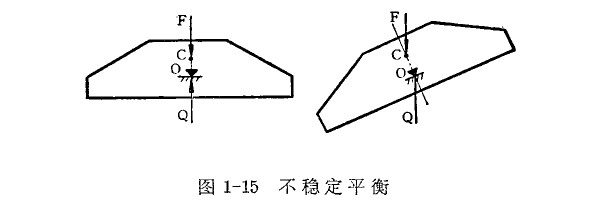 2.不穩定平衡     當杠桿的重心在支點相重合時,杠桿的平衡位置被破壞,支點反力Q和重力F所形成的力繞支點轉,而不能回 到原來的位不穩定平衡(見圖1—15)